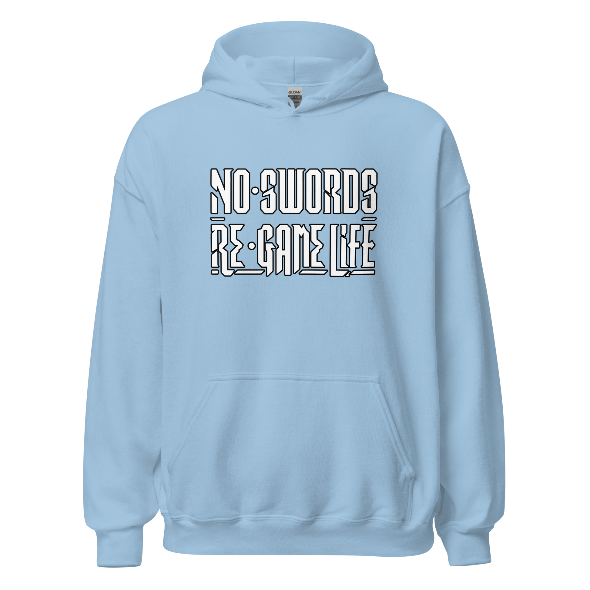A hoodie based on the TOTALLY real and *not at all a joke* isekai anime: No Swords Re: Game Life.